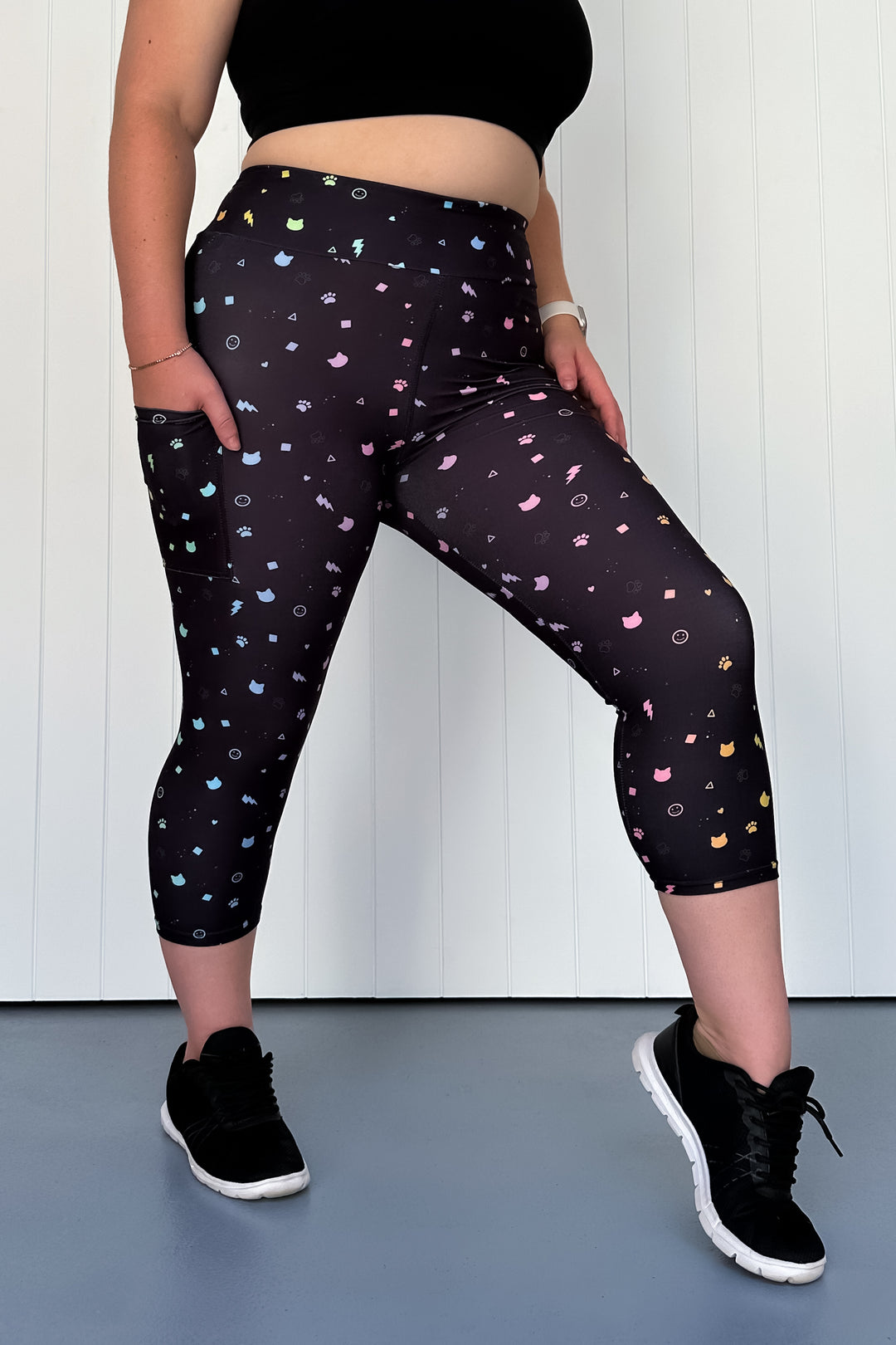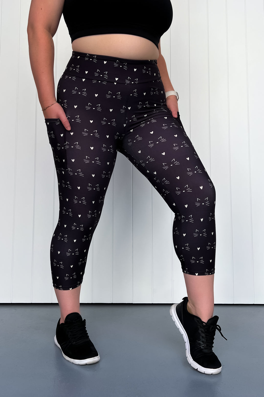 Nocturnal Whiskers - Casual - Capri Leggings - Pockets