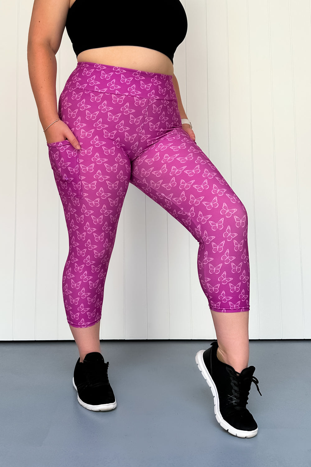 Rich Purple Butterflies - Casual - Capri Leggings - Pockets