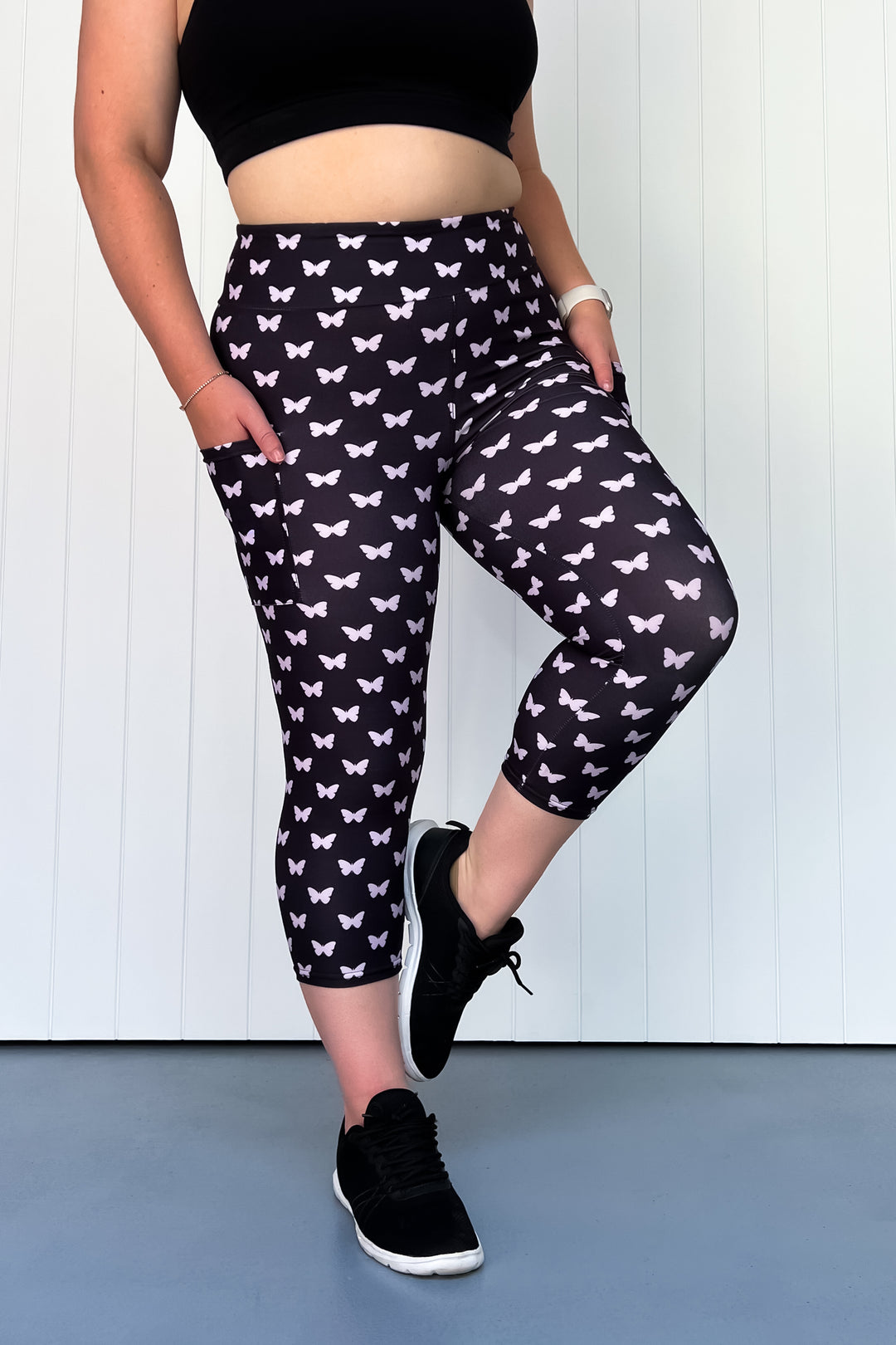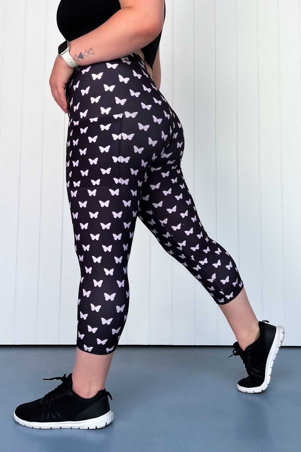 Butterfly Imprint - Casual - Capri Leggings - Pockets