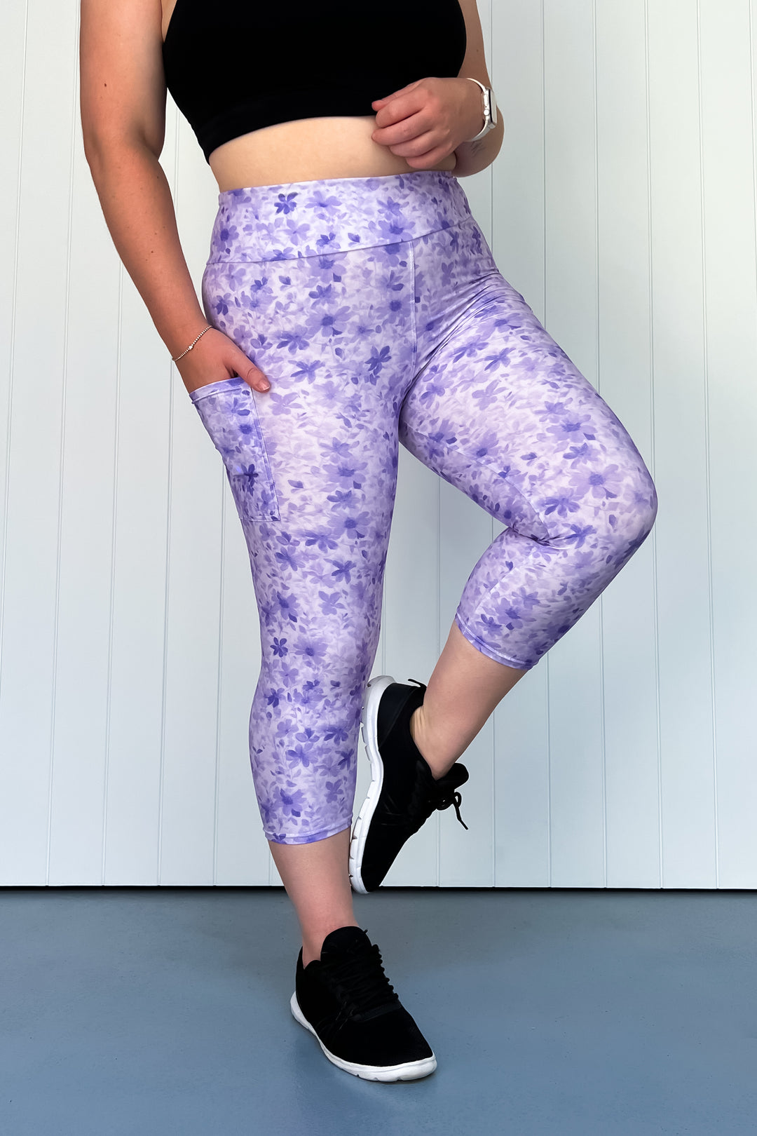 Purple Meadow Mist - Casual - Capri Leggings - Pockets