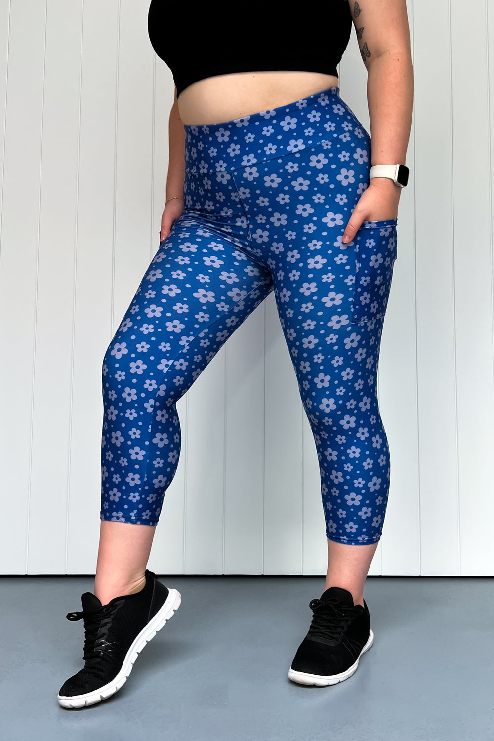 Navy Daisy Confetti - Casual - Capri Leggings - Pockets