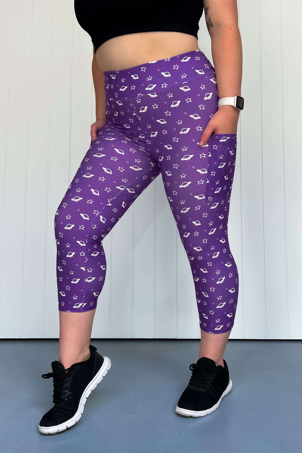 Purple Saturn - Casual - Capri Leggings - Pockets