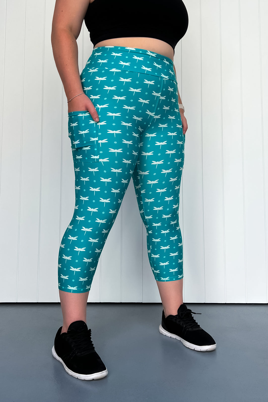 Teal Dragonfly - Casual - Capri Leggings - Pockets