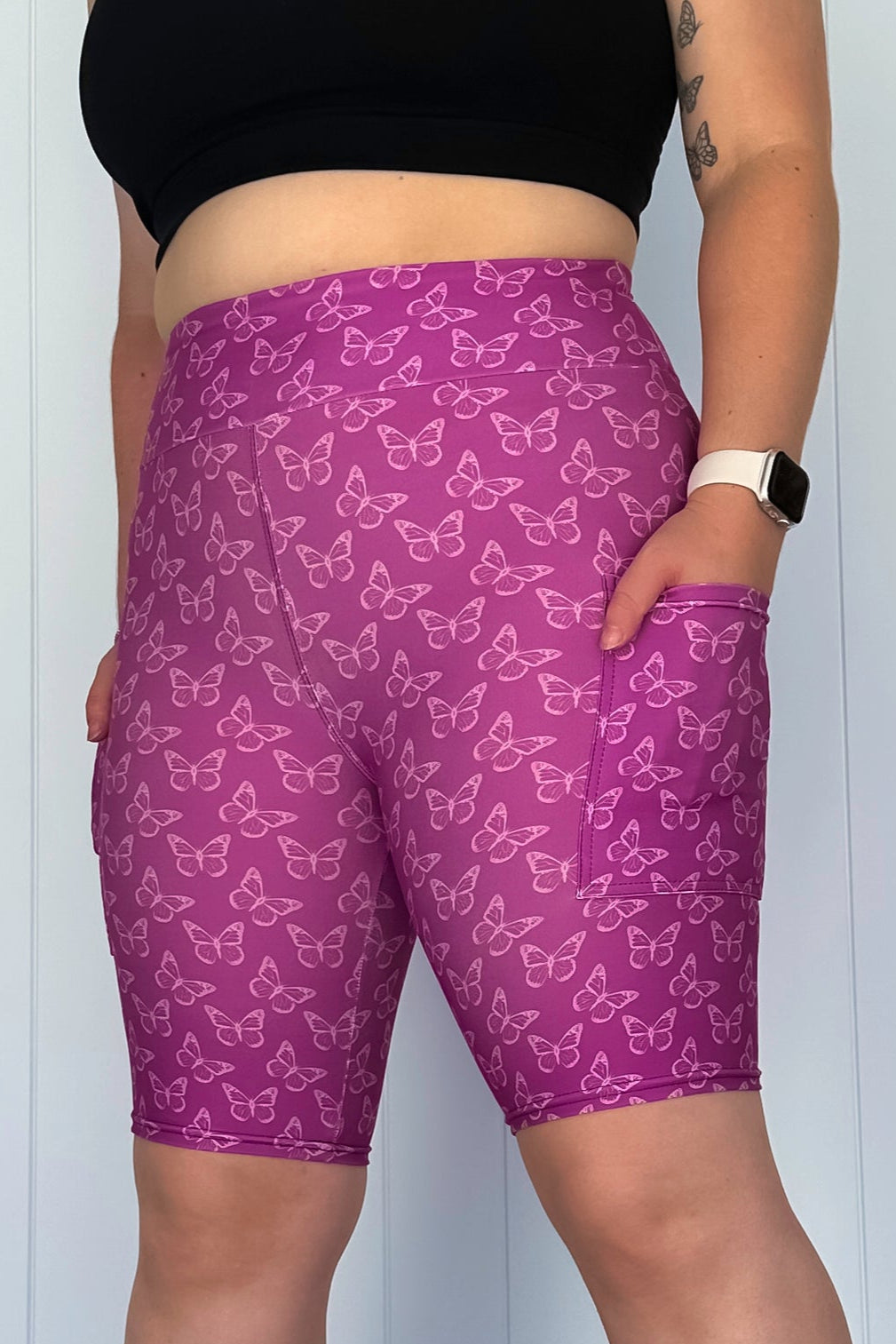Rich Purple Butterflies - Casual - Long Shorts - Pockets