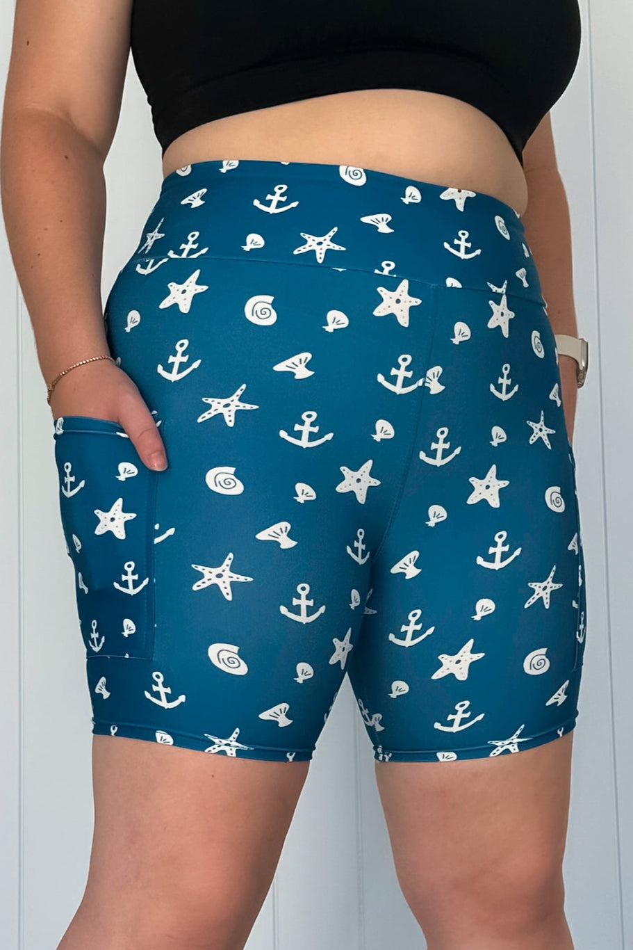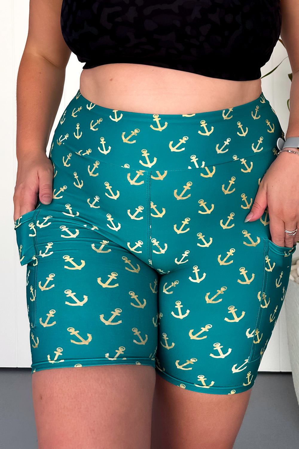 Teal & Gold Anchor Charm - Casual - Mid Shorts - Pockets