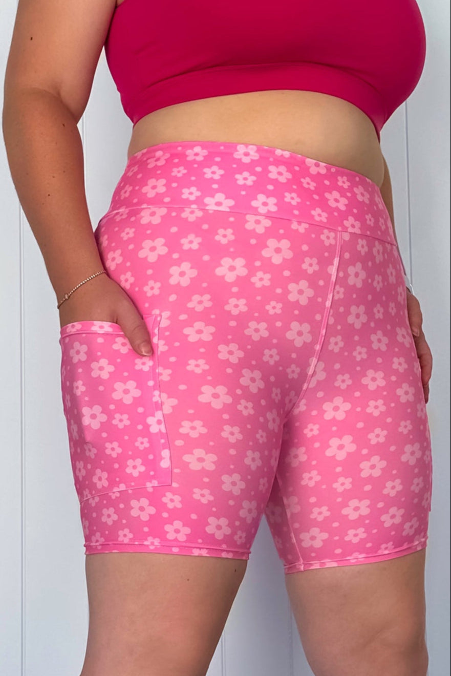 Pink Daisy Confetti - Casual - Mid Shorts - Pockets