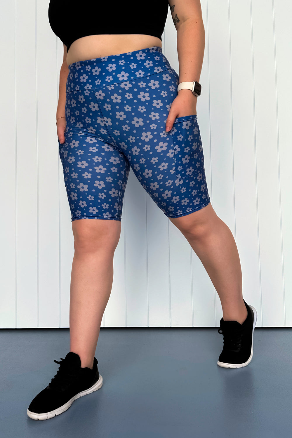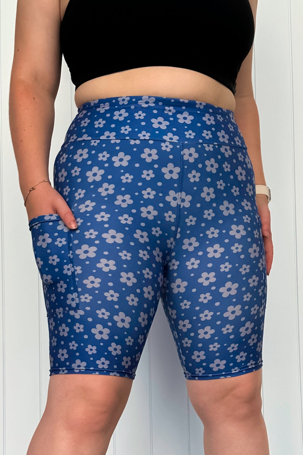 Navy Daisy Confetti - Casual - Long Shorts - Pockets