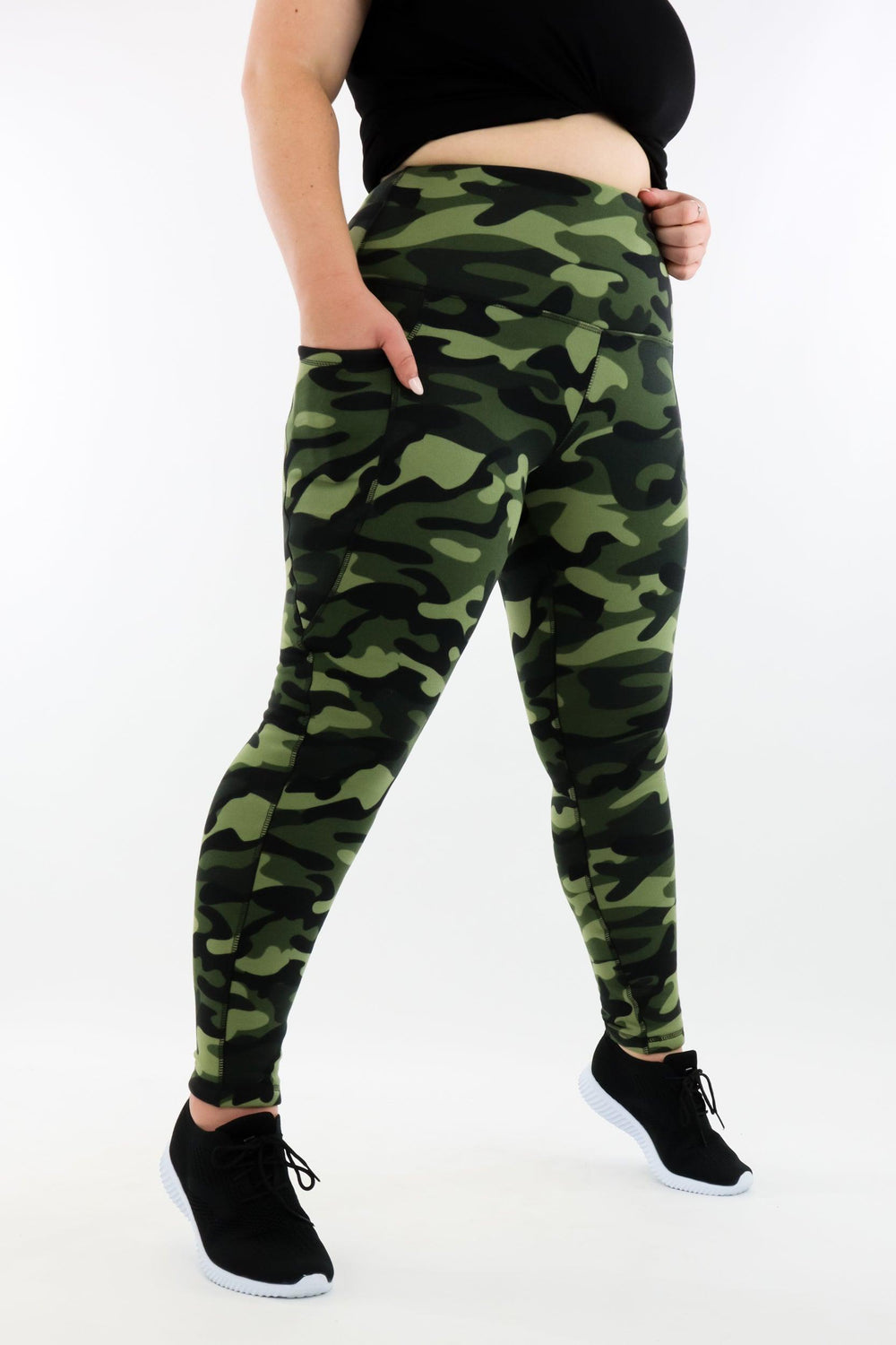 Olive Camo - Fleece - Leg Pockets - Full Leggings