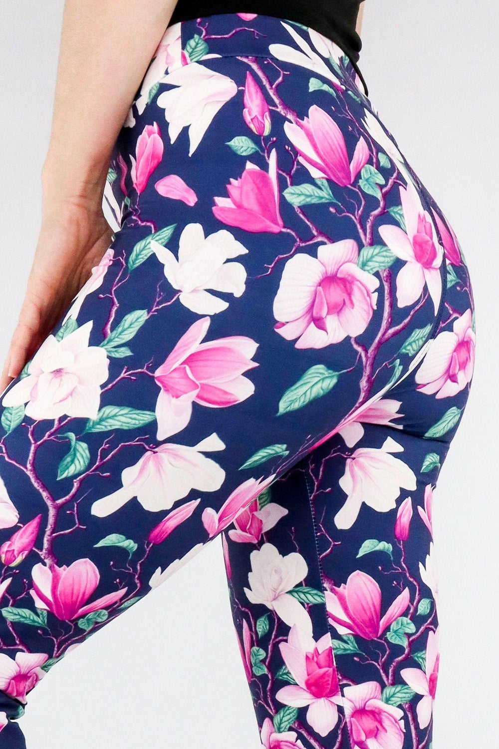 Vintage Magnolia - Casual Leggings - Blue/Pink Casual Full Leggings Pawlie