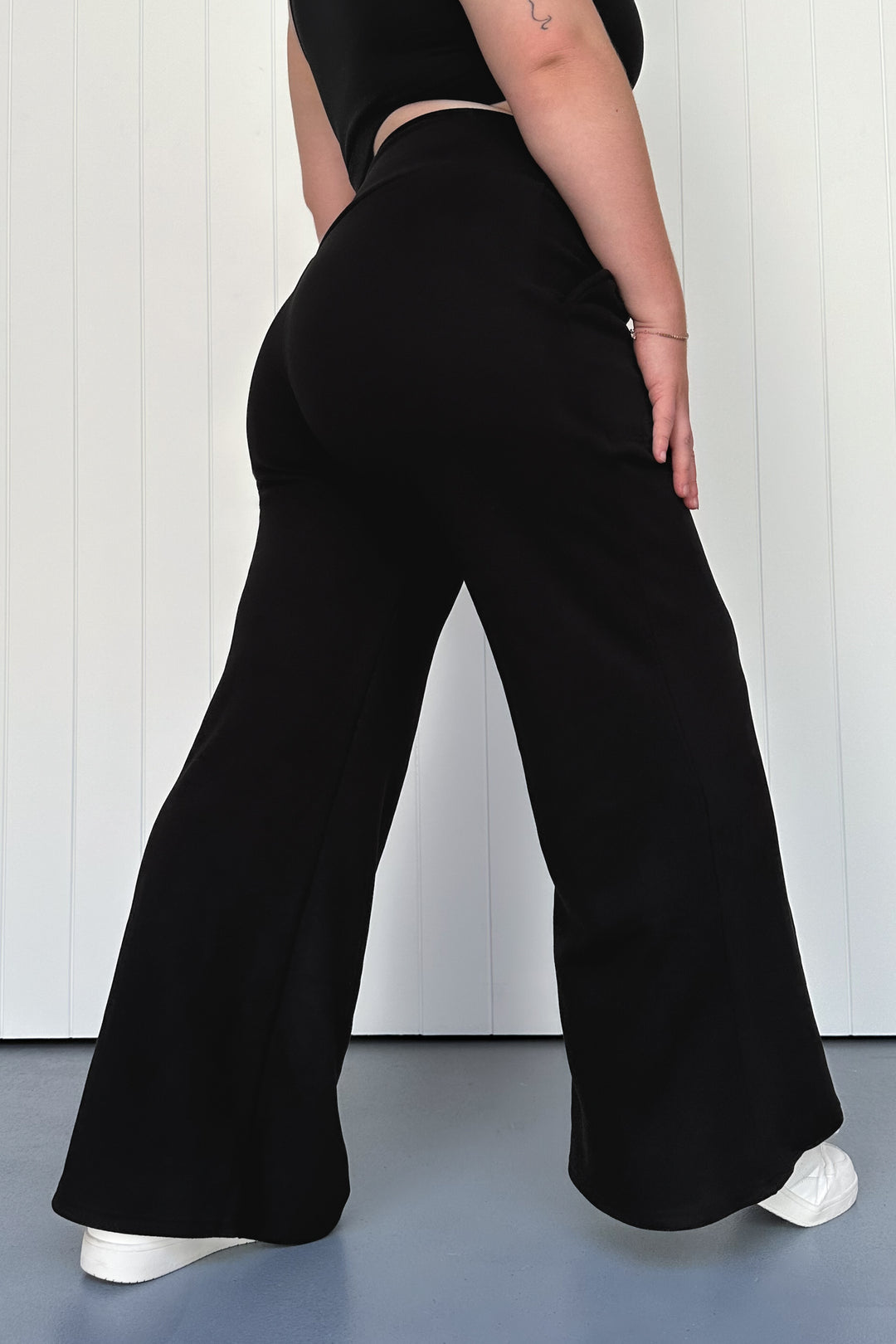 Plain Black - Flarey Leggings - Leg Pockets Hybrid Flares Pawlie