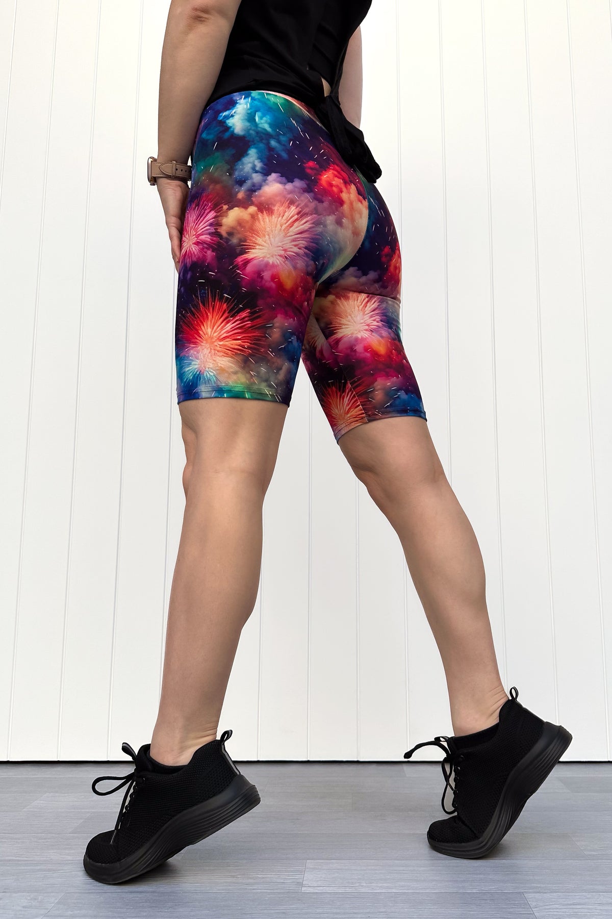 The Colourful Fireworks Long Shorts light up your wardrobe with brilliant explosions of pink, blue, gold and violet against a dark sky. Designed for comfort and confidence, these shorts are your go-to for moments that call for a little extra colour and a lot of fun.