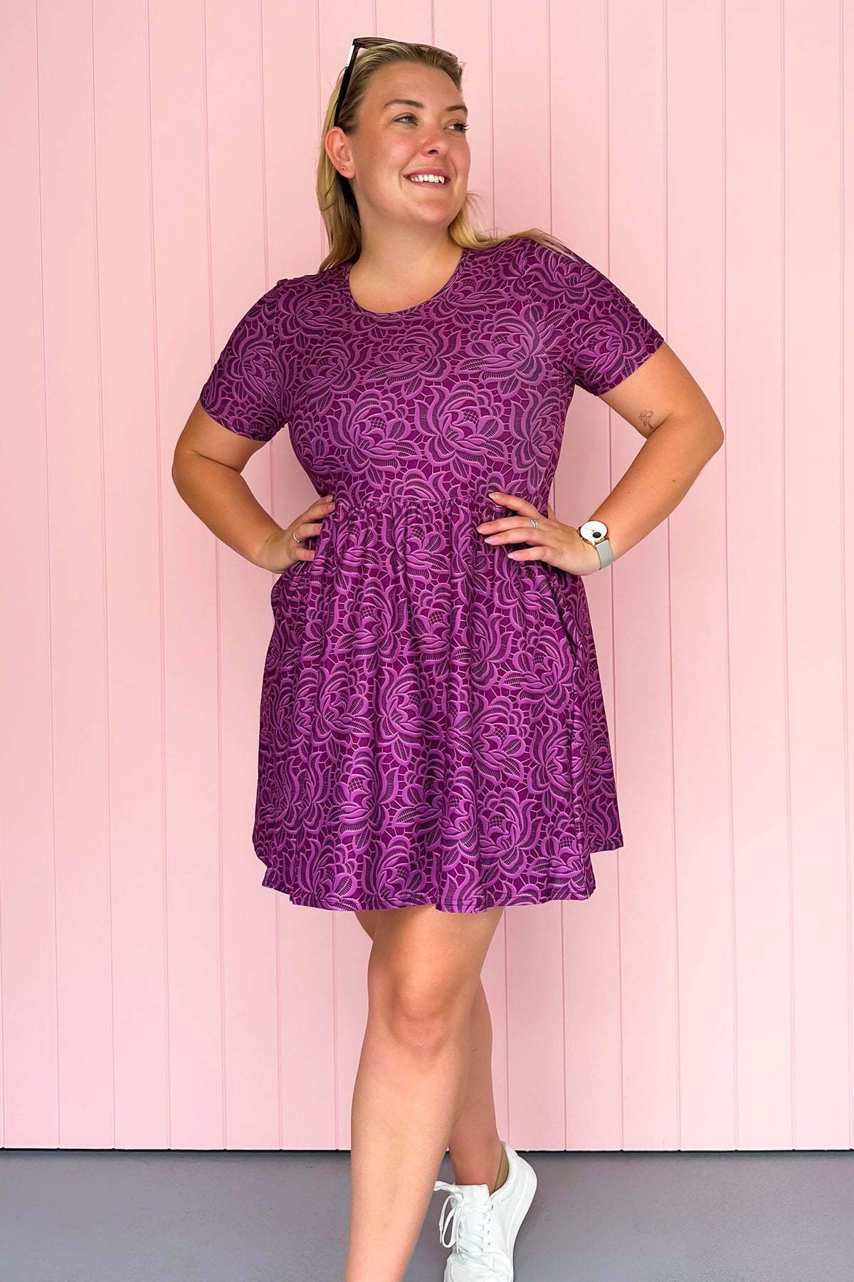 Lacy Plum - Mini Dress - Short Sleeve - Pockets