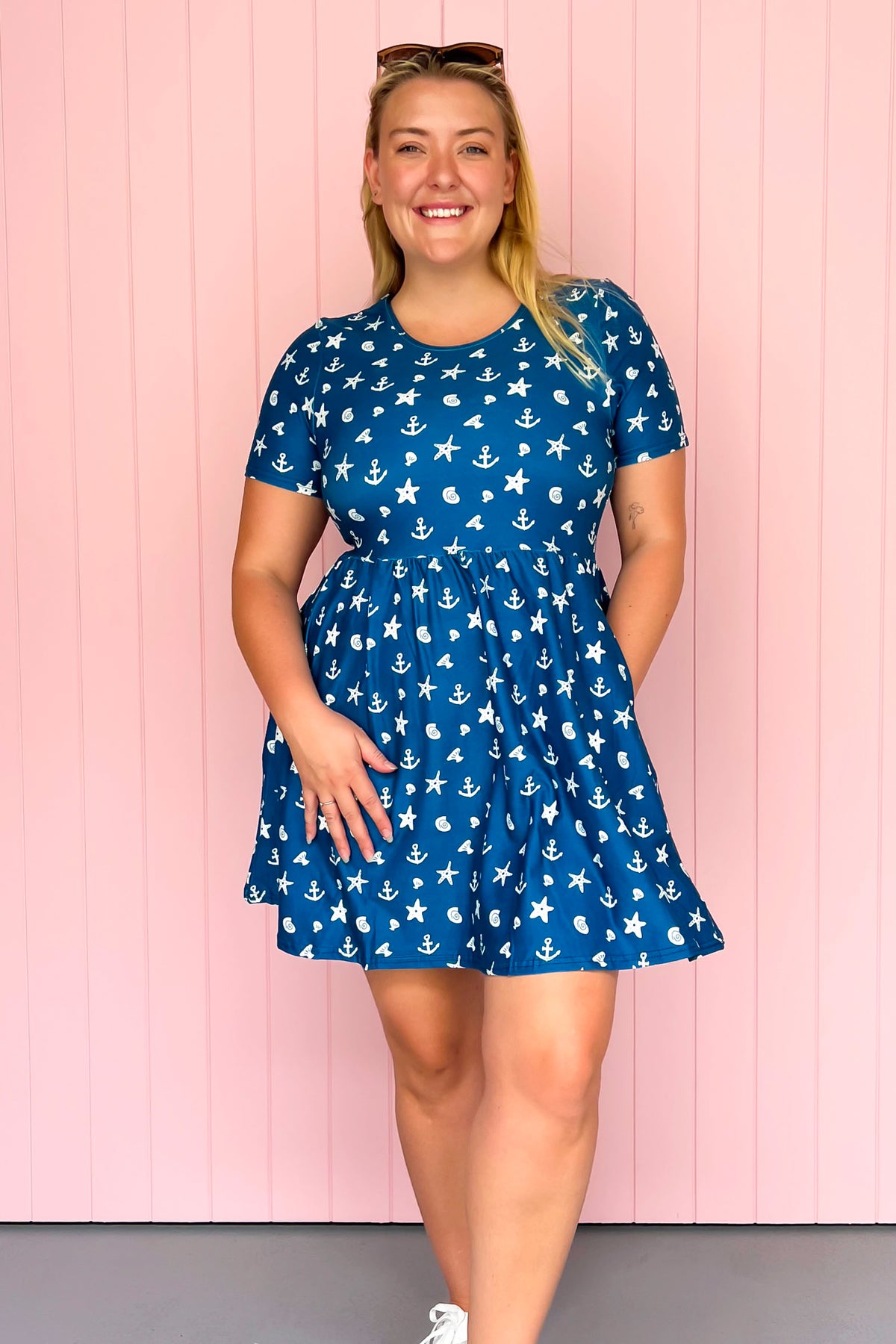 Not all of us can drop everything and sail off into the sunset, but at least the One with the Sea Mini Dress lets you add some coastal charm to your wardrobe. With anchors, shells and starfish scattered across a deep-sea blue background, this print provides just the right amount of nautical without making you feel like a lost sailor. And if you're someone that prefers wearing shorts under your dress for extra comfort, you can pair it with the matching shorts*.