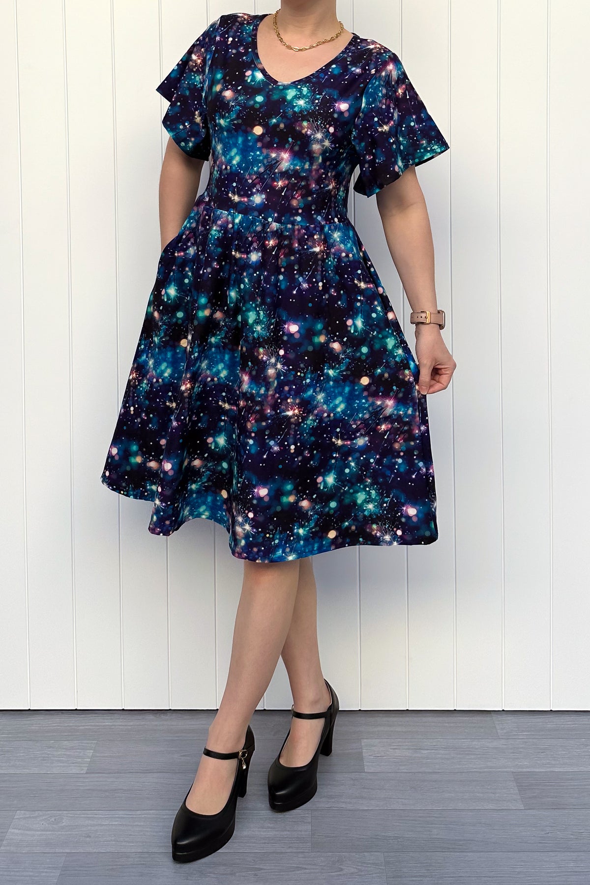 Sparklers - Knee Length Dress - Flutter Sleeve - Pockets