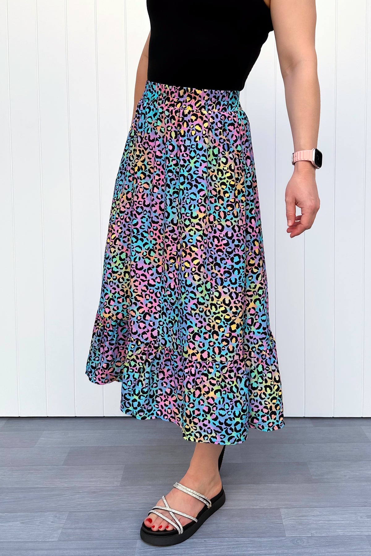 Zinnia Midi Skirt - Vivid Leopard - Pockets